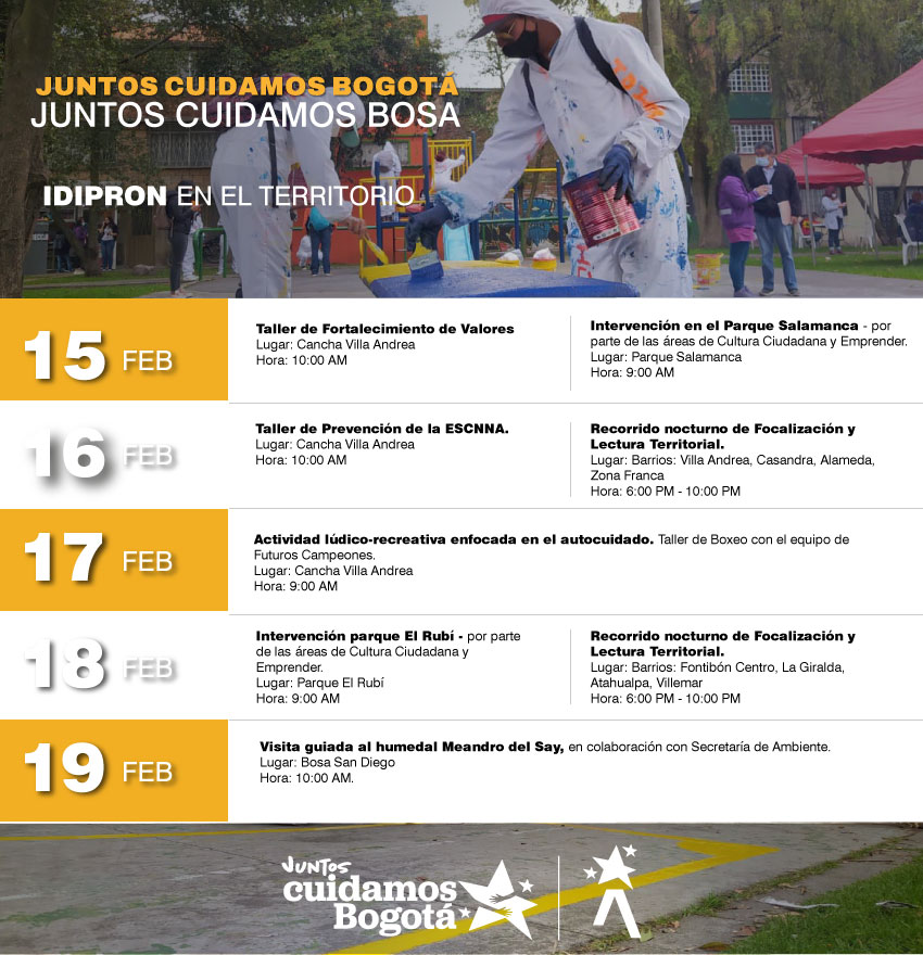 Consulta aquí el cronograma de actividades del IDIPRON en el territorio: