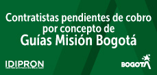 Información importante: El Área de Tesorería del Instituto Distrital para la Protección de la Niñez y la Juventud - IDIPRON publicará la relación de contratistas pendientes de cobro por saldos a favor, y/o sumas dinerarias por concepto de Guías Misión Bogotá y monitoras de ruta no reclamadas por los contratistas del programa, así: