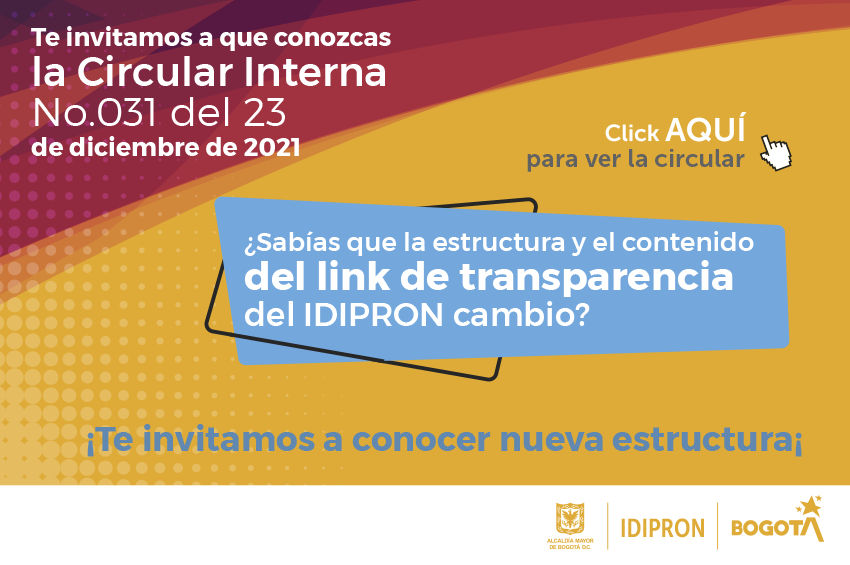 Noticias Idipron Diciembre 24, 2021Circular 031 de 2021 - Cambios en el enlace de Transparencia y Acceso a la Informaci贸n P煤blica
